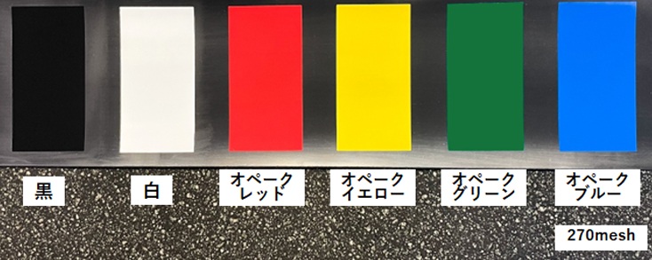 ゴム用のインキとして、黒色生地の上でも鮮やかな発色を示す優れた隠蔽性を持つカラーをラインナップしています。